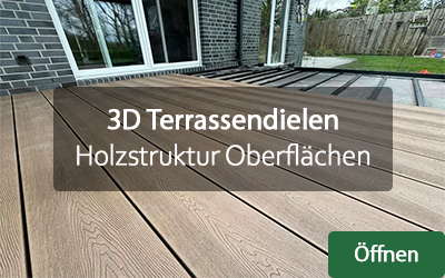 Im Bereich der Terrassendielen führen wir über 500 Artikel und diese in unterschiedlichen Längen, Breiten und Farben. Wir haben versucht, technische Entwicklungen und Trends im Bereich WPC Terrassen, BPC Terrassen, Harthölzer, Weichhölzer, Thermohölzer oder Bambus aufzunehmen. Eine übersichtliche Strukturierung des Sortimentes macht es Ihnen einfach sich zu bedienen: